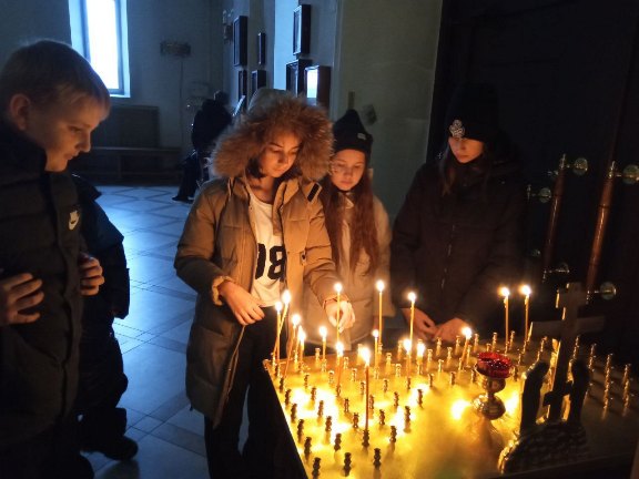 Почитать — значит уважать, любить, ценить, слушаться, помогать, заботиться, поздравлять с праздниками, делать подарки своими руками, благодарить. Затем дети пишут записки и ставят свечи о здравии родителей, своих близких, друзей и о упокоении усопших. Далее служится краткий молебен и заупокойная лития. На память все получают карманные календари с храмом на 2026 год.
