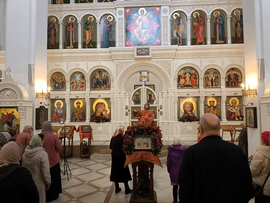 Богослужение возглавил настоятель храма иерей Кирилл Краев в сослужении протодиакона Сергия Шевёлкина. Помогал иерей Александр Ломоносов. После литургии был совершен крестный ход вокруг храма.